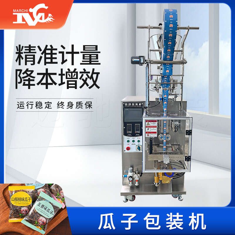 瓜子包裝機是一款專為瓜子類堅果產品設計的自動化包裝設備,廣泛應用于食品加工行業的瓜子、堅果、零食等產品的包裝需求。該設備能夠實現全自動化操作,從定量稱重、物料充填到袋口封合,一次性完成,幫助企業提升生產效率,減少人工干預。