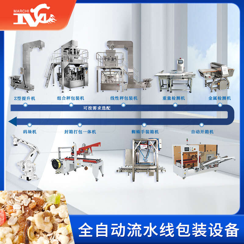 全自動流水線包裝設備是現代化生產企業提高生產效率、降低人工成本的關鍵設備。在這其中,給袋式顆粒包裝機作為一款先進的包裝設備,廣泛應用于多種顆粒狀物料的自動化包裝,適用于食品、醫藥、化工等行業。